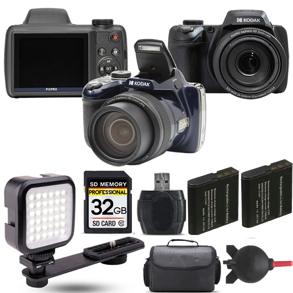 Kodak PIXPRO AZ528 Digital Camera (Black) Extra Battery + LED - 32GB Kit