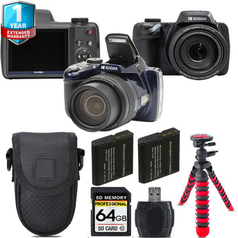 Kodak PIXPRO AZ528 Digital Camera (Black) + Extra Battery +Tripod + 1 Yr Warranty -64GB Kit