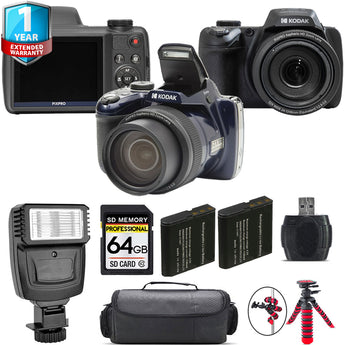 Kodak PIXPRO AZ528 Digital Camera (Black) 1 Yr Warranty + Flash - 64GB Kit