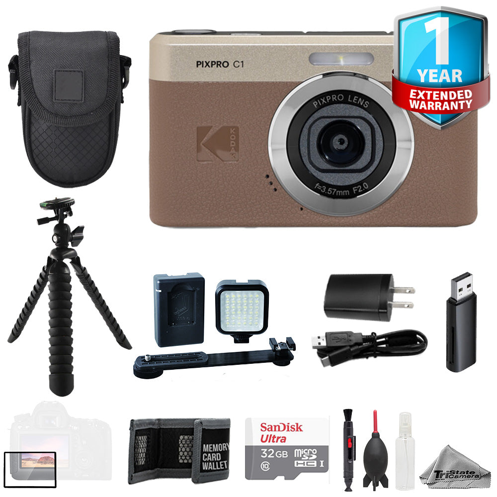 About Kodak PIXPRO C1 Compact Digital Camera Brown +32GB +Tripod+1Yr Warranty-ULTIMATE Kit