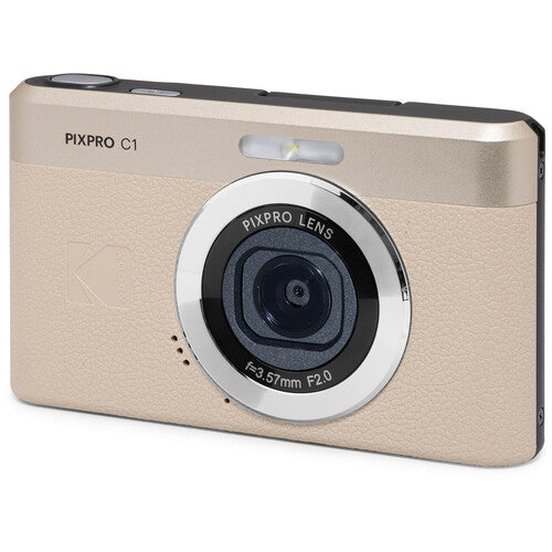 The PIXPRO C1 Compact Digital Camera from Kodakis a vintage-style point-and-shoot fixed lens with capable modern internal hardware. Between the 26mm f/2 fixed focus wide-angle lens and the 13 MP 1/3" BSI CMOS sensor, it's simple to make crisp, colorful photos in a variety of lighting situations. The camera has a built-in flash and an 2.8" LCD screen that tilts 180° for taking selfies or shooting from any angle. It captures video, recording scenes in 30 or 60 fps at 1920 x 1080 Full HD. Recharge the internal battery with the included USB-C cable, so you're always ready for spontaneous shoots.