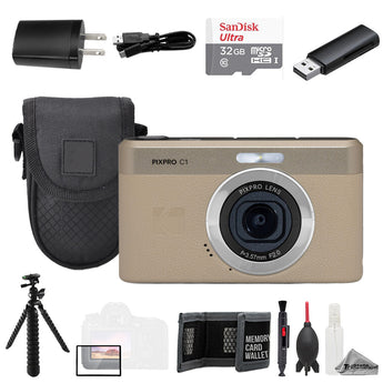 About Kodak PIXPRO C1 Compact Digital Camera Tan + 32GB + Tripod + Cleaning Kit- Value Kit