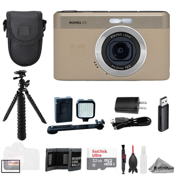 About Kodak PIXPRO C1 Compact Digital Camera Tan + 32GB + Tripod+ LED Light- ULTIMATE Kit