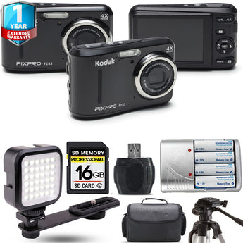 Kodak PIXPRO FZ43 Digital Camera (Black) + Extra Battery + 1 Yr Warranty - 16GB Kit