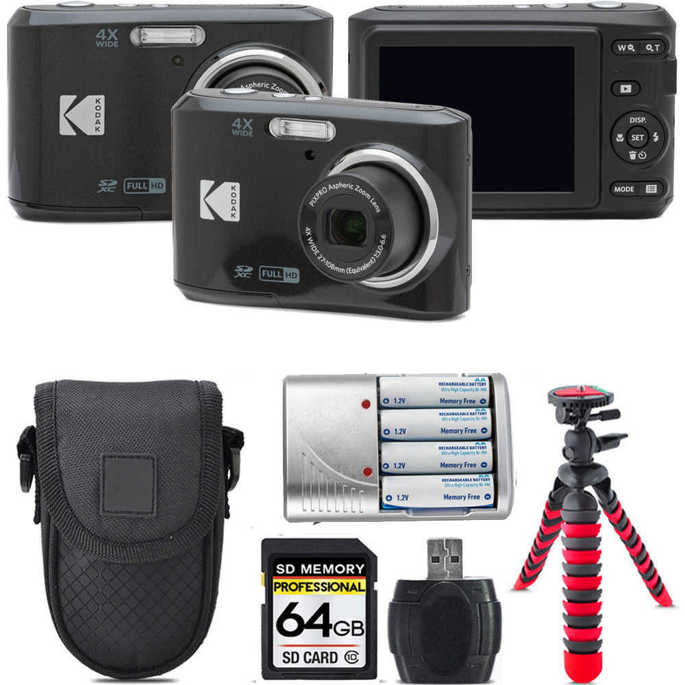 Kodak Pixpro FZ45 Camera (Black) + Extra Battery +Tripod + Case -64GB Kit
