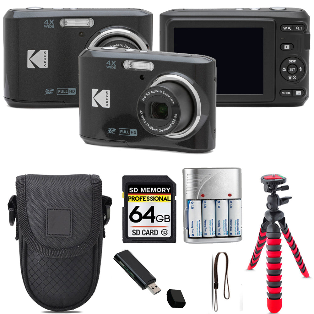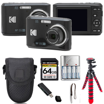 Kodak Pixpro FZ45 Camera (Black) + Tripod + Case - 64GB Kit