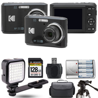 Kodak Pixpro FZ45 Camera (Black) + Extra Battery + LED - 128GB Kit
