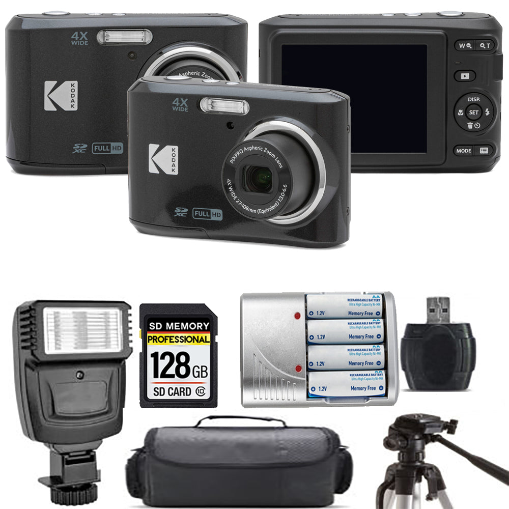 Kodak Pixpro FZ45 Camera (Black) + Extra Battery + Flash - 128GB Kit