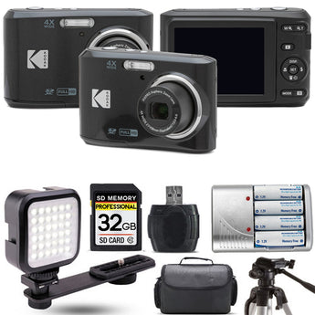 Kodak Pixpro FZ45 Camera (Black)+ Extra Battery + LED - 32GB Kit