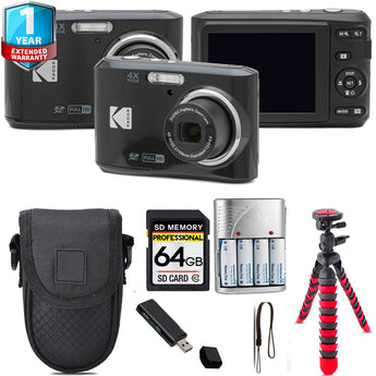 Kodak Pixpro FZ45 Camera (Black) + Tripod + 1 Yr Warranty - 64GB Kit