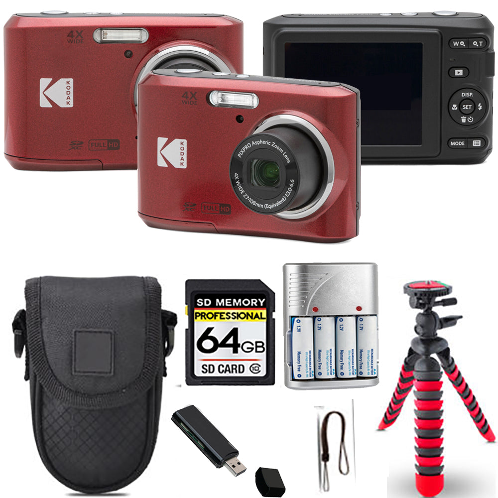 Kodak Pixpro FZ45 Camera (Red)+ Spider Tripod + Case - 64GB Kit