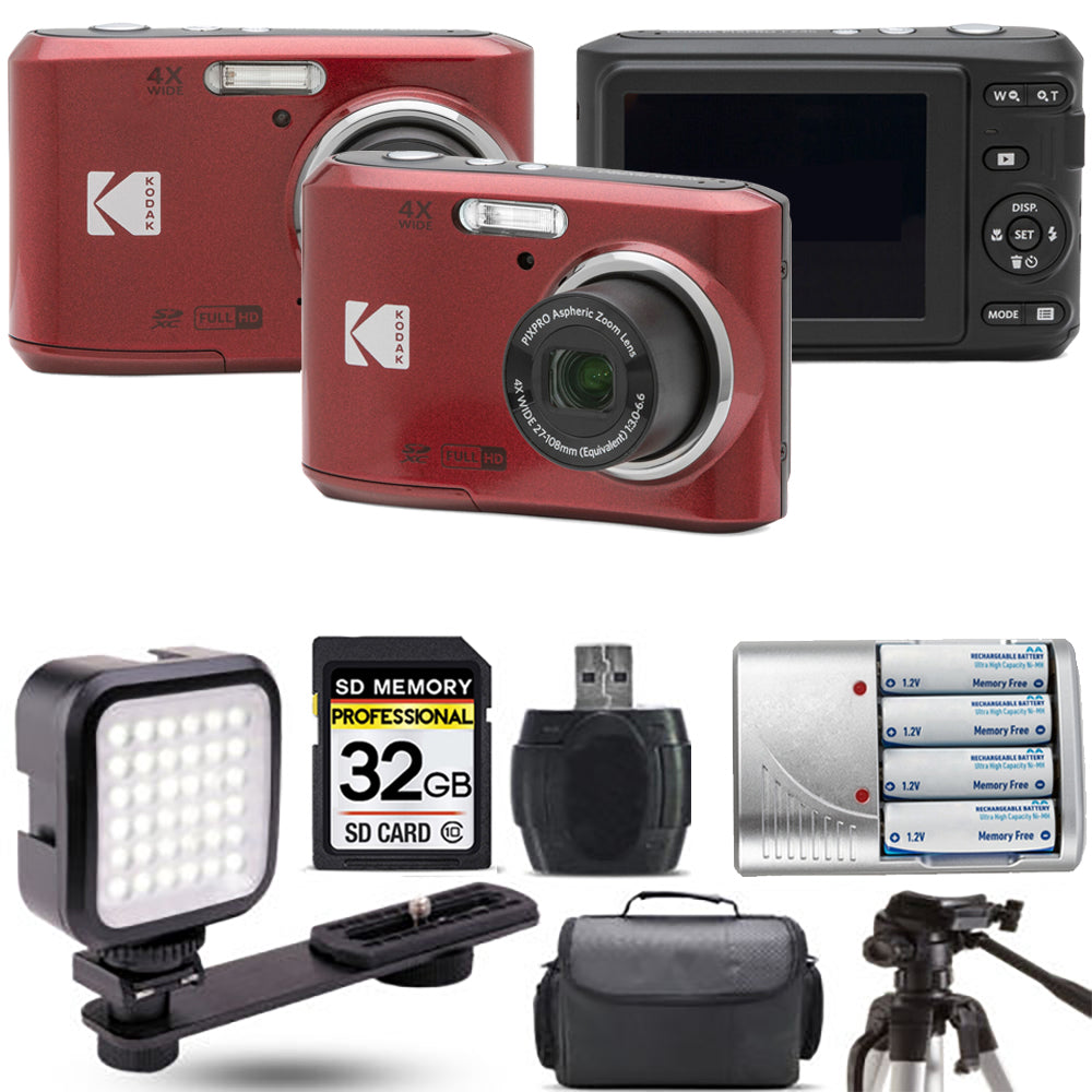 Kodak Pixpro FZ45 Camera (Red)+ Extra Battery + LED - 32GB Kit