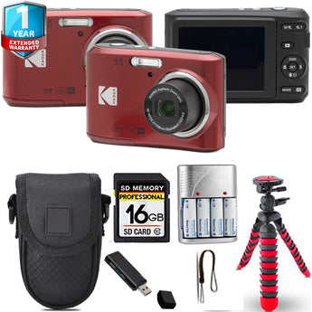 Kodak Pixpro FZ45 Camera (Red) + Spider Tripod + Case+ 1 Yr Warranty