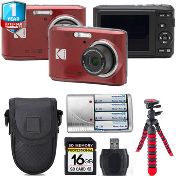 Kodak Pixpro FZ45 Camera (Red) + Extra Battery +1 Yr Warranty + Case -16GB