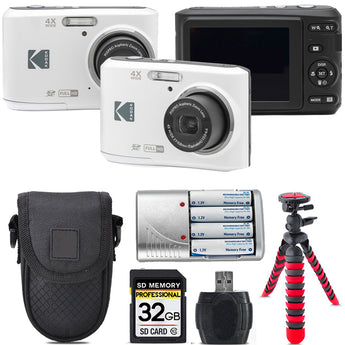 Kodak Pixpro FZ45 Camera (White) + Extra Battery +Tripod + Case -32GB Kit