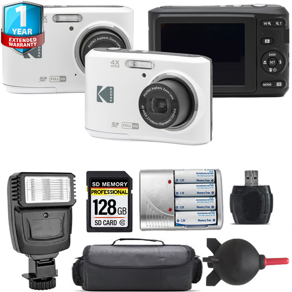 Kodak Pixpro FZ45 Camera (White) + Extra Battery + Flash+ 1 Yr Warranty