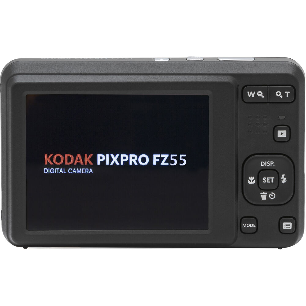 The Kodak PIXPRO FZ55 Digital Camera in Red is a small and easy-to-use Friendly Zoom camera from the Kodak PIXPRO collection. This point-and-shoot camera features a 28mm wide angle lens with a 16MP 1/2.3" CMOS sensor and 2.7" LCD screen. The PIXPRO FZ55 has multiple flash and shooting modes along with a variety of detection features, including face and smile detection. The PIXPRO FZ55 is powered by a rechargeable lithium-ion battery that can be charged inside the camera.