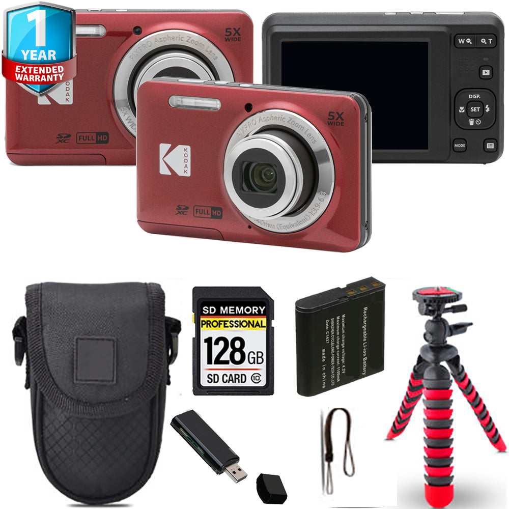 Kodak PIXPRO FZ55 Digital Camera (Red) + Spider Tripod + Case+ 1 Yr Warranty