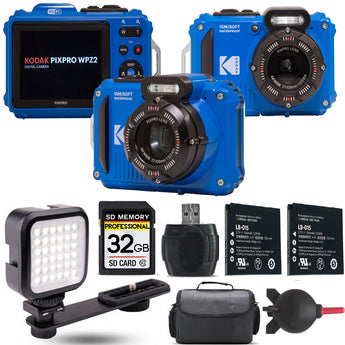 Kodak PIXPRO WPZ2 Digital Camera (Blue)+ Extra Battery + LED - 32GB Kit