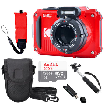 Kodak PIXPRO WPZ2 Digital Camera (Red) + Case + Foam Floating Strap - 128GB Kit Specifications