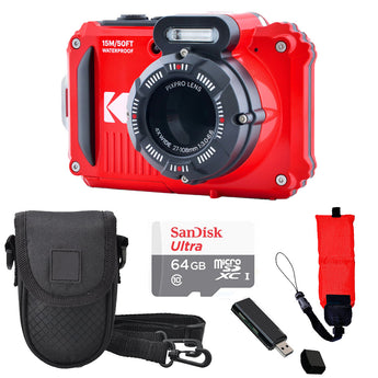 Kodak PIXPRO WPZ2 Digital Camera (Red) + Case + Foam Floating Strap - 64GB Basic Kit