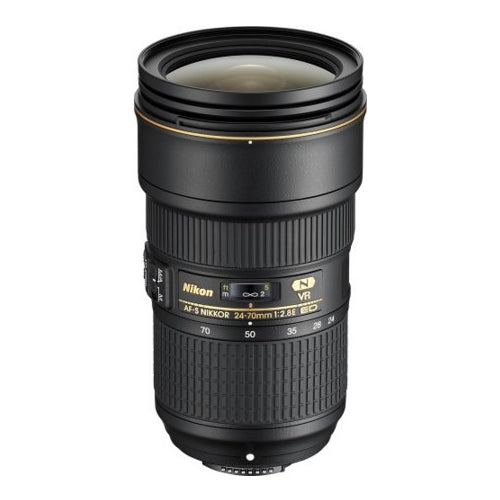 The classic standard zoom now featuring Vibration Reduction image stabilization, Nikon's AF-S NIKKOR 24-70mm f/2.8E ED VR Lens is a truly versatile wide-angle to short telephoto lens characterized by its constant f/2.8 maximum aperture and electromagnetic aperture mechanism. A revised optical design incorporates a unique aspherical extra-low dispersion element, in addition to three aspherical, two extra-low dispersion, and one high refractive index elements, to help reduce chromatic aberrations and distortions throughout the zoom range in order to achieve high image sharpness and clarity. The Nano Crystal and Super Integrated Coatings further benefit image quality by reducing lens flare for improved contrast and color accuracy and fluorine coatings on the front and rear elements protect against dust, moisture, and smudging.