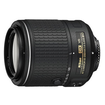The Nikon AF-S DX NIKKOR 55-200mm f/4-5.6G ED VR II Lens is a versatile and compact telephoto zoom lens that is well-suited for portraiture, sports, or wildlife photography. When placed on a Nikon DX camera, it offers an angle of view equivalent to that of a 82-300mm lens on a full-frame 35mm digital camera. When paired with a Nikon DX 18-55mm lens, seamless wide angle to telephoto capability is obtained.