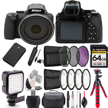 About Nikon COOLPIX P1000 Digital Camera 83x + LED + 7PC Filter + EXT BAT - 64GB Bundle