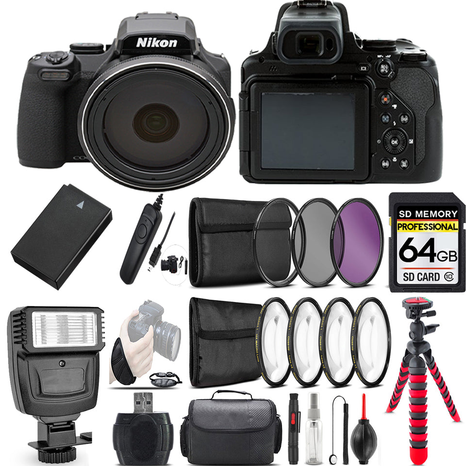 About Nikon COOLPIX P1000 Digital Camera 83x + Flash + 7PC Filter + EXT BAT - 64GB Kit