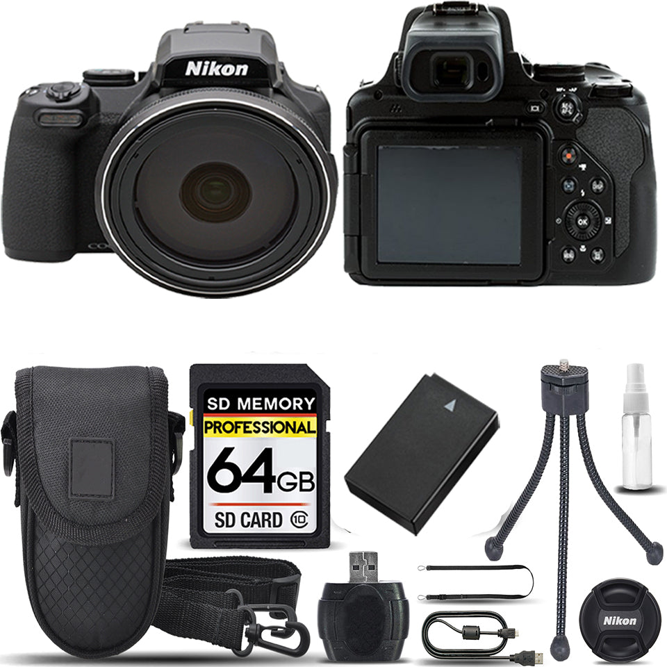 Nikon COOLPIX P1000 Digital Camera 83x Optical Zoom WiFi +Case +Tripod- 64GB Kit