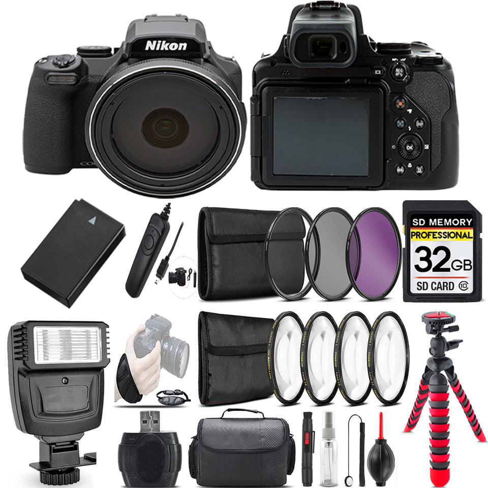 About Nikon COOLPIX P1000 Digital Camera 83x + Flash + 7PC Filter + EXT BAT - 32GB Kit