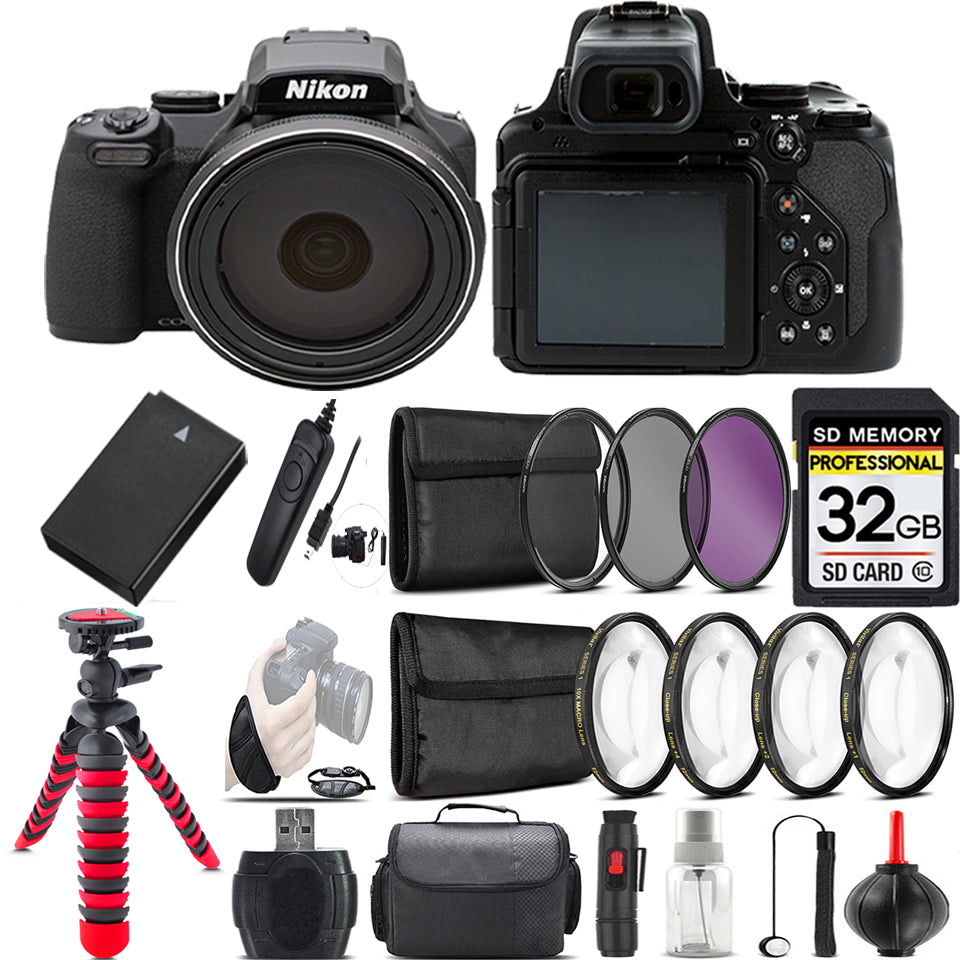 About Nikon COOLPIX P1000 Digital Camera + Spider Tripod + EXT BAT - 32GB Kit
