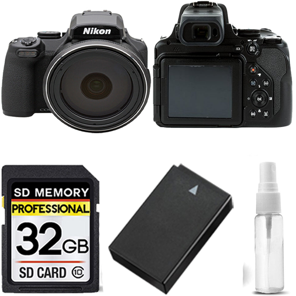 Nikon COOLPIX P1000 Digital Camera 83x Optical Zoom WiFi + EXT BATT - 32GB KIT
