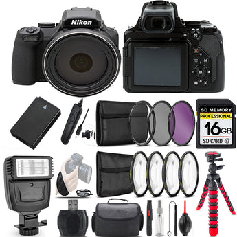 About Nikon COOLPIX P1000 Digital Camera 83x + Flash + 7PC Filter + EXT BAT - 16GB Kit