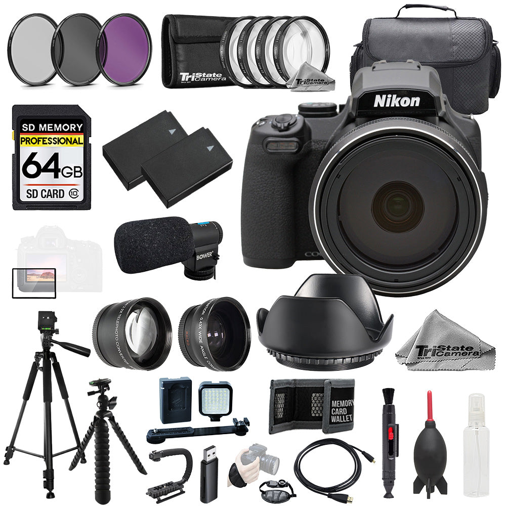 Nikon COOLPIX P1100 Digital Camera + Mic +64GB+ 9 PC Filter-MEGA Kit