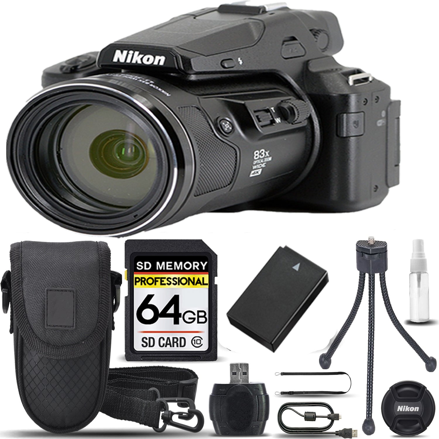 Nikon COOLPIX P950 Digital Camera 83x Optical Zoom WiFi +Case +Tripod- 64GB Kit