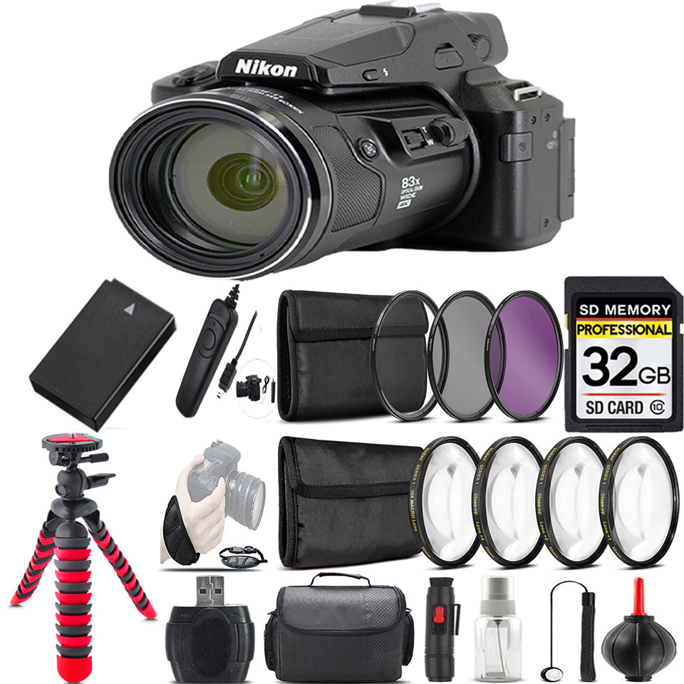 About Nikon COOLPIX P950 Digital Camera + Spider Tripod + EXT BAT - 32GB Kit