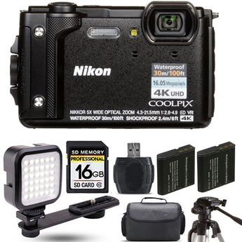 Nikon COOLPIX W300 Camera (Black) + Extra Battery + LED - 16GB Kit