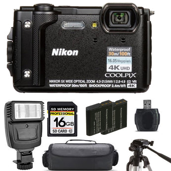 Nikon COOLPIX W300 Camera (Black) + Extra Battery + Flash - 16GB Kit