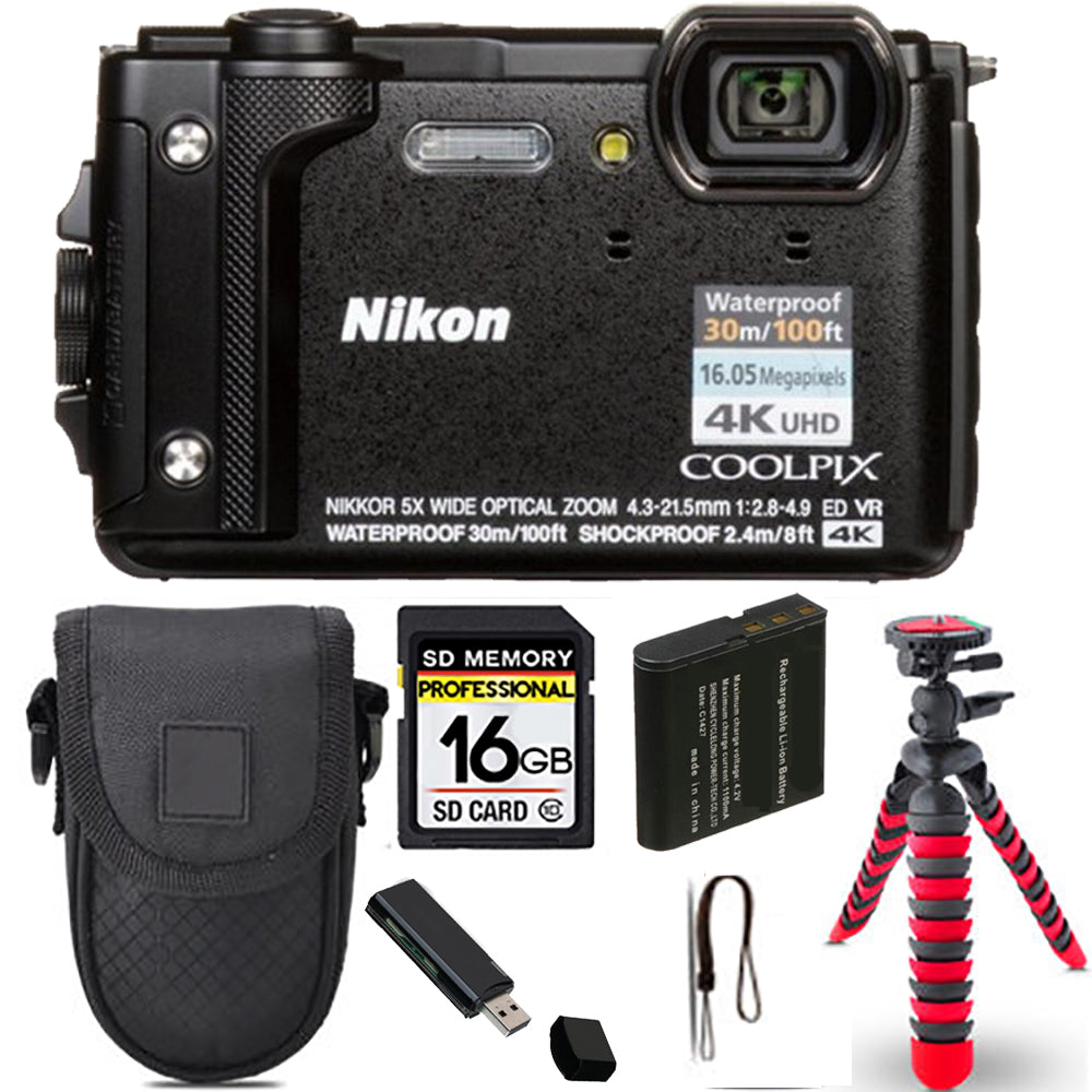 Nikon COOLPIX W300 Camera (Black)+ Spider Tripod + Case - 16GB Kit