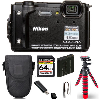 Nikon COOLPIX W300 Camera (Black)+ Spider Tripod + Case - 64GB Kit