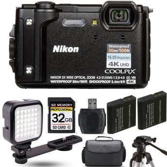 Nikon COOLPIX W300 Camera (Black)+ Extra Battery + LED - 32GB Kit