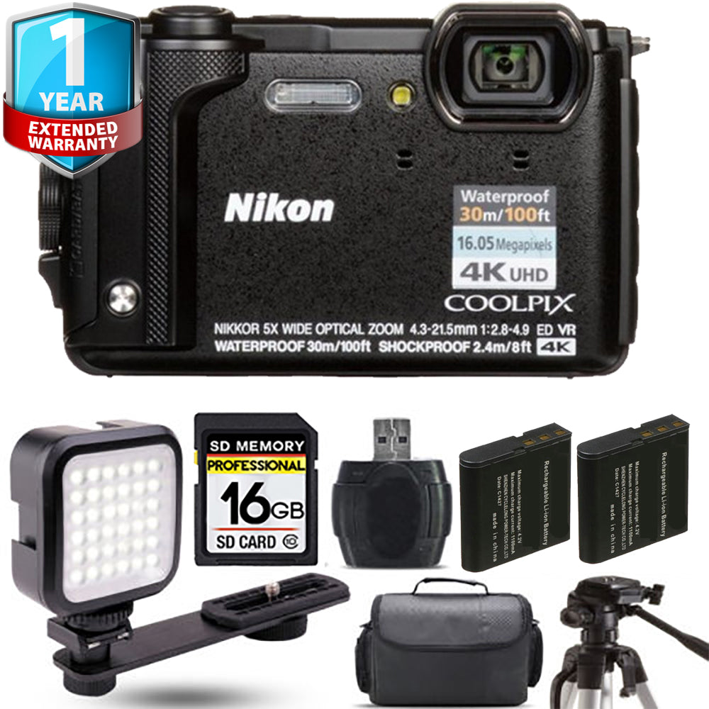 Nikon COOLPIX W300 Camera (Black) + Extra Battery + 1 Yr Warranty - 16GB Kit