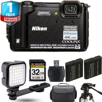 Nikon COOLPIX W300 Camera (Black) + Extra Battery + LED +1 Yr Warranty