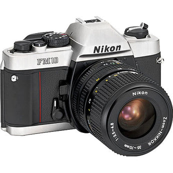 A basic, all-manual SLR combination for students, the FM10 35mm SLR Camera with 35-70mm Lens will help you learn the art of photography the old fashioned way. Load, advance, and rewind the film yourself. Determine exposure manually with just a simple match diode centerweighted meter, and enter the settings on the aperture ring and shutter speed dial. Use any Nikon F-mount lens which has an aperture ring. You'll only need small, long-lasting button batteries for the meter (the shutter is all-mechanical) and some film. The FM10 is a basic camera that's a great teaching instrument and fun, too.