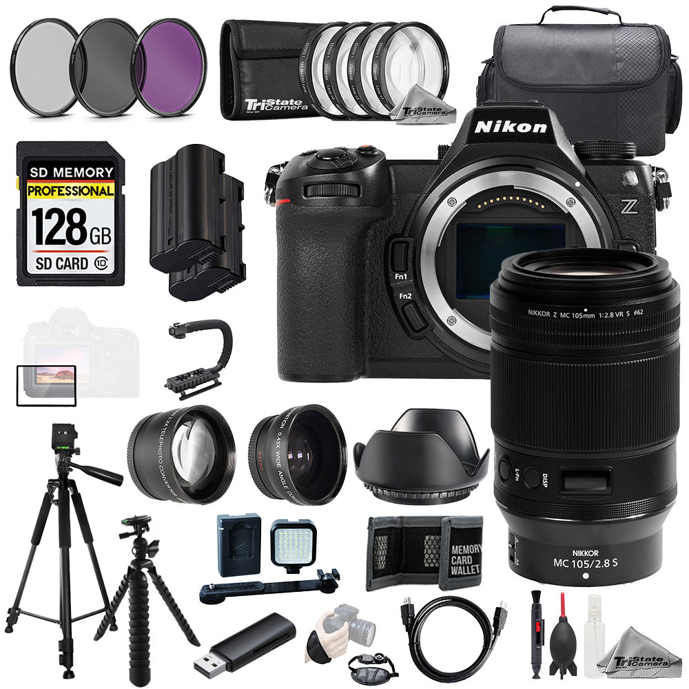 About Nikon Z6 III + Z MC 105mm f/2.8 VR S Macro Lens+128GB+ExtBat+9 PC Filtr MEGA Kit