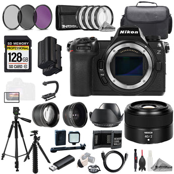 About Nikon Z6 III + Z 40mm f/2 Lens+128GB+Ext Bat+9 PC Filtr MEGA Kit