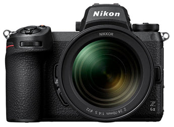 More speed, more versatility, more performance, the Nikon Z 6II is an updated take on the all-rounder mirrorless camera designed for high-end photo and video applications. Despite the wealth of upgrades, the Z 6II retains its familiar form factor and prized image quality to benefit working multimedia image-makers.Revolving around a 24.5MP BSI CMOS sensor and dual EXPEED 6 image processors, the Z 6II is characterized by an increased buffer depth and faster continuous shooting rate, up to 14 fps with single-point AF or 12 fps shooting in other focusing modes. Video recording at UHD 4K 30p is possible, or up to FHD 120p for slow-motion output, and external recording gains 10-bit out along with N-Log and HLG (HDR) support. The sensor also suits working in a variety of lighting conditions, with sensitivity from ISO 100-51200, and in-body 5-axis Vibration Reduction reduces the appearance of camera shake for sharper handheld shooting. Additionally, the sensor also incorporates a 273-point phase-detection AF system, which now supports Eye-Detect AF in Wide-Area AF modes and during movie recording, and permits focusing in low-light down to -4.5 EV.