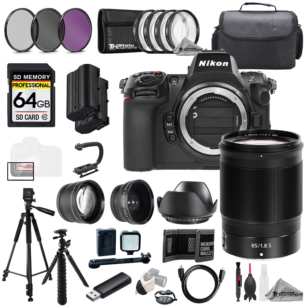 About Nikon Z8 + Z 85mm f/1.8 S Lens+64GB+Ext Bat+9 PC Filter-MEGA Kit