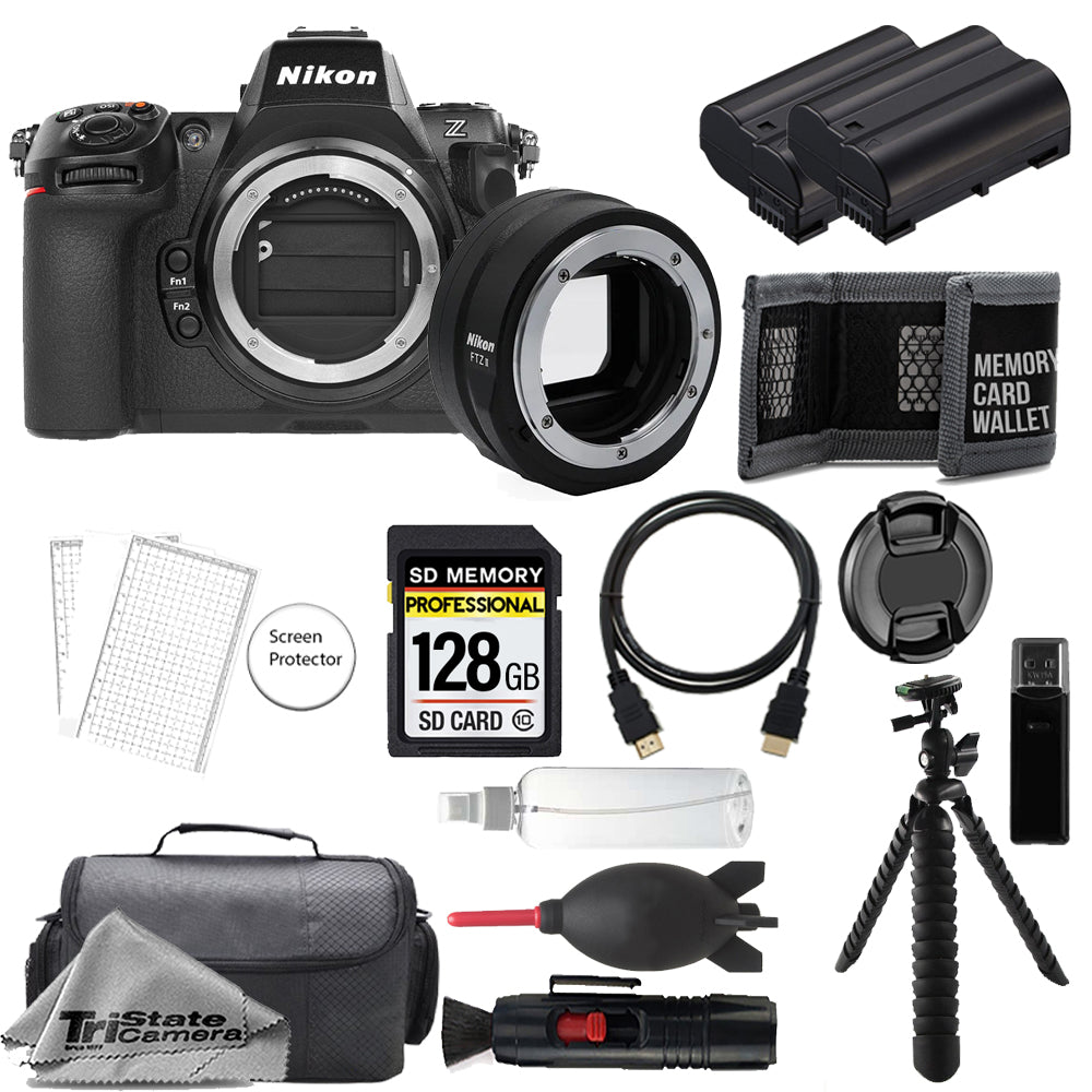 Nikon Z8 Mirrorless Digital Camera (Body) w/ FTZ II Mount Adapter+ 128GB + Extra Battery+ Tripod- Accessory Kit